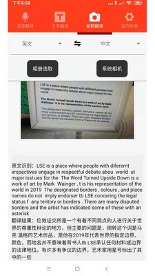 文字翻译:输入文字 翻译文本。可复制翻译结果。支持语音播放。