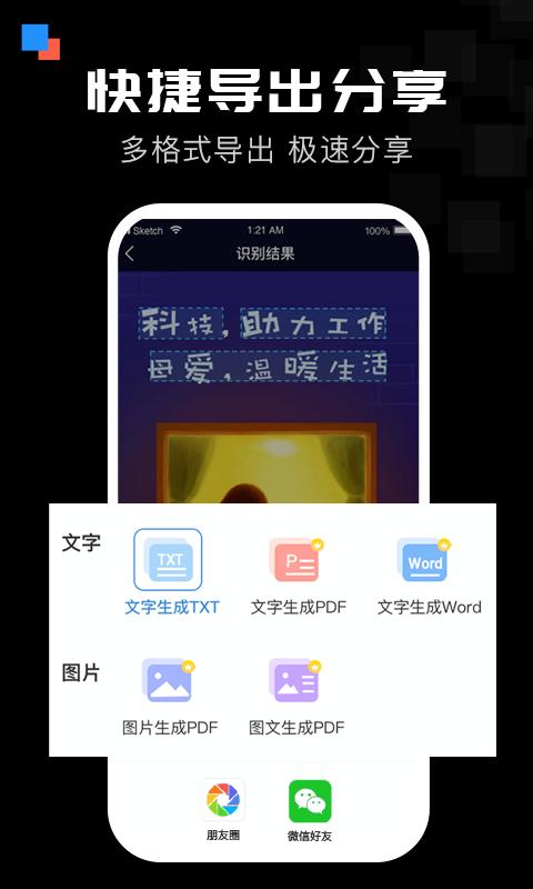 全能扫描宝APP免除手动输入的烦恼,可将图片中的文字识别导出TXT/Word/PDF等多种格式,在手机上直接给文件添加电子签名十万次识别测试,准确识别率高达99%,,支持英、法、日等多语种之间实时翻译,方便快捷,识别结果文本替换,中英文标点符号修正,是你工作生活中不容错过的得力助手。