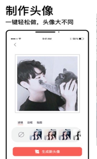 头像制作神器app是一款为用户准备的头像制作软件,每日都有不一样的精品头像送给你,支持任意裁剪,每日都有不一样的精品头像送给你,每天都有专业设计师为您设计独家的头像,还有独特的滤镜特效,头像制作大师搜索功能帮你轻松找到心中所想,可以自己设计喜欢的头像风格,让你天天换头像,每天都不一样,用户可以在头像制作神器app制作独一无二的头像。