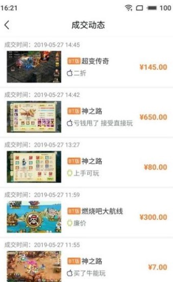 各种最新最热们的游戏一键下载,超多精品热门游戏都收录了,轻松的获取更多的游戏活动动态,各种道具的买卖模式任你挑选,安全正规,平台交易公开化,到账迅速不等待,为您推荐各种精品的手机游戏,还有客服随时在线服务。有需要的小伙伴们就快来下载试玩体验吧!