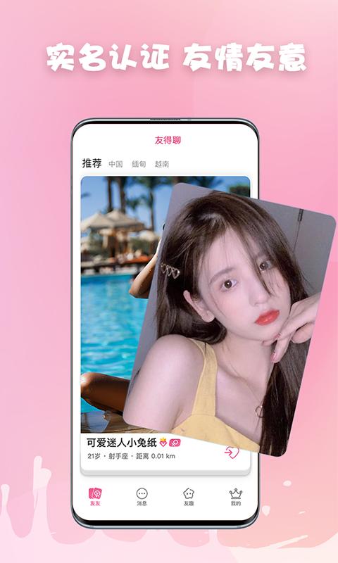 甜友聊天交友是一款十分靠谱的交友聊天软件,这个社交平台既可以满足大家的扩大朋友,同时还能够帮助那些单身的朋友找到自己的伴侣,且里面的人群全部都是真人,大家尽管放心添加认识,并且还支持网友们通过多种渠道来搜索寻找你感兴趣的人群添加,而且还可以把你喜欢的好友放置到专栏内....