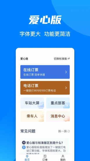 铁路12306APP是一款专注于提供网络订购火车票服务的手机出行必备APP,它可以实现预订和改签等等各种业务的线上办理,同时将你的每一笔订单都保存起来随时查看。这款铁路12306APP贴心的为大家设置的爱心模式,它会将整个软件的字体都放大让年纪大的用户也可以清楚的使用和查询。我们这个软件不仅仅是可以给自己预订车票,你可以添加任何人的信息进行预订,还支持在线选座哦。