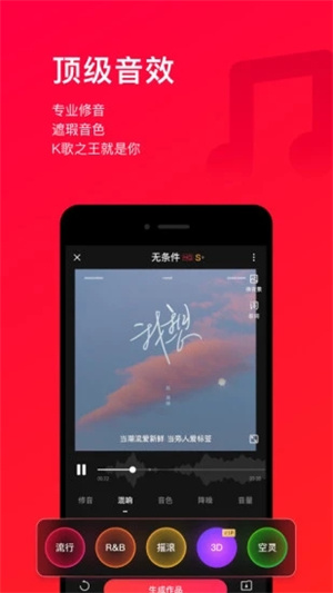 在这里相当于一个移动的KTV,让你随时随地想唱就唱,还可以与你的好友进行在线的歌唱PK,在这里拥有着海量的音乐题材供你挑选,当下最为火热的音乐这里也有。
