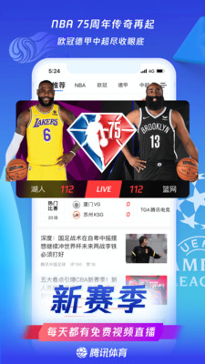 腾讯体育解锁版2021这是一款满足球迷爱好者们花式需求的影音播放软件app,流畅极速观看,绝对不卡顿。开启全新的赛季模式。每天都会有免费的视频直播敬请观看,NBA七十五周年的传奇再起,欧冠德甲中超精彩尽收眼底。神秘嘉宾倾情加盟解说天团,,极具专业解说态度,打造海量节目作品,呈现丰富多彩的新内容,开启丰富的年轻文化矩阵,时刻保持一颗年轻的心。带给用户新玩法,直播互动花样玩法翻新,让人不自觉的眼前一亮。还等什么?快来下载腾讯体育解锁版2021吧。