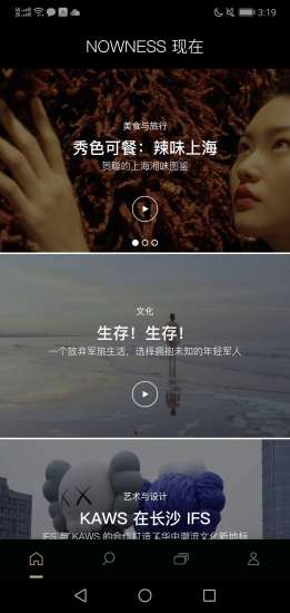 NOWNESS现在app是由开发商:广州现代移动数码传播公司打造的一款阅读感兴趣的原创内容的手机应用,在这里你可以获取到各个领域的全部的热点内容可以阅读,当然还有超级多原创优质视频可以观看。其实幸福的生活很容易就可以得到,做自己喜欢的事情了解自己感兴趣的内容就可以让时间流逝的很快,更何况当你有了这款NOWNESS现在app就可以收获更多的知识,通过手机了解整个世界。