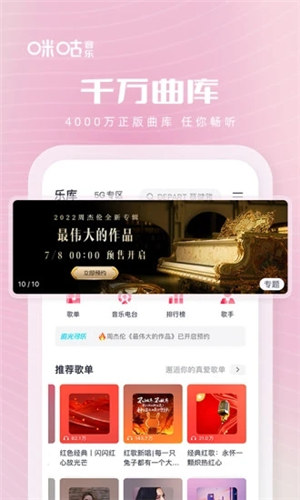 咪咕音乐app很不错的一款音乐播放软件,有着很多强大的听歌功能,在这里用户可以解锁全新的听歌方式,和好友一起听歌,还有强大的音乐云盘,无需担心手机内存不足,喜欢的音乐都可以储存在云盘中,随时随地打开软件听歌,还有全新的歌曲等你来发现,喜欢这款音乐软件,可以在这里直接下载获取。