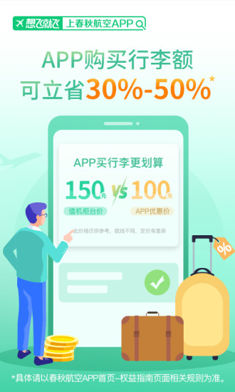 春秋航空app官方下载是一个专注提供机票查询和购票的平台,这个软件拥有更加省钱的购票优惠,而且还支持线上进行购票的方式,大大提高了用户们的生活效率,直接在手机上买完票就可以直接进站,不需要再等待排队时间,还有一站式的航班查询服务,你想去的城市都可以快速查询到相关航班信息,让自己的出行更加了如指掌,并且有任何情况都是可以进行退票的,让你从此购票无忧虑,简单的购票操作,还有专属的新人教材指导,让你买机票变得更加简单方便。