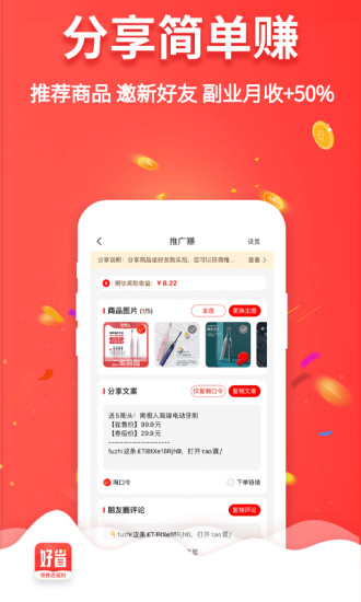 好省快报app下载是一个可以让你省很多钱的购物APP,覆盖多个购物平台的商品信息,而且你可以免费获取到大额的平台优惠券,这里的优惠券都是无门槛的使用规则,就算是大牌的商品你也可以进行抵扣使用,让自己轻松省钱购物,购物下单成功还能立马返现,真的是省钱省到家,最高可省钱90%哦,分享购物链接给好友,还能再赚佣金奖励,并且可以不停的邀请更多好友来进行购物,轻松赚取零花钱不是问题,这些零钱都是可以进行提现的哦,超快的提现到账速度,深受百万用户的喜爱。