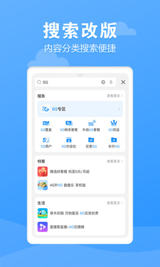 电信营业厅客户端是中国电信公司推出的一款掌上业务办理平台,有了这款APP你就不用再到营业厅现场去办理业务了,直接在手机平台上面就可以轻松搞定,一站式的业务办理功能,让你可以获取到更多方便快捷的生活体验,你可以在平台上面交话费、查订单、充流量、办理套餐、装宽带、联系客服、兑换积分等等,各式各样的服务你都可以在平台首页当中清楚查看,一键登录自己的手机账号,就可以轻松开启你的专属电信业务,更有多重新人好礼等你来拿哦。