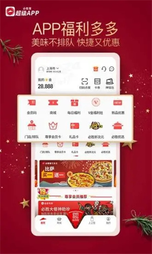 必胜客app最新版是一款掌上必胜客点餐软件平台,在这里你可以进行必胜客的点餐或者外卖点餐,是不是特别的棒,在这里有着简洁的页面设计应用,超多的食物种类分类排列,让你可以不再眼花缭乱,可以一眼就找到自己想要的版块内容,是不是特别的棒,在这里有着超多的优惠券、礼品供你挑选,超级强大的礼品卡商品可以兑换超多必胜客礼物,在这里所有的优惠券在你线下买单的时候也可以进行使用,让你可以尽情的享受省钱的服务,在这里软件是不受任何网络的限制,随时随地都可以使用,感兴趣的小伙伴们快来下载试试看吧。