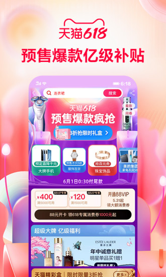 手机天猫手机版2021是阿里巴巴公司旗下的一款优质购物平台,全国有10亿的用户都在使用手机天猫手机版2021进行购物,这款软件拥有超多大牌好物商品,正品有保障的商品货源,让每位消费者都可以放心的在平台上进行购买,有任何质量问题都可以进行七天无理由退换,从此购物无忧,新人用户首次注册登录购物,就能获得价值388元的新手礼包,让你购物可以变得更加省钱哦,每天都有专柜的商品在进行限时抢购获得,你也可以来这边购买自己喜欢的商品,更多生活惊喜尽在手机天猫手机版2021。