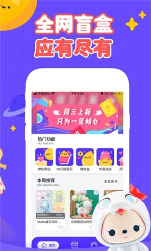 盲盒星球app可以满足你对盲盒各种需求,这款软件专为盲盒爱好者打造,各种品牌系列的盲盒应有尽有,尽在盲盒星球app,全网盲盒想要获取,就来这里准没错,用户还可以在线选盒,买了就马上开,给用户带来最大的便利,这里还有各种超值优惠,可以给用户带来不少的优惠,一键出售,包邮发获,非常的迅速,让你买的安心又自在,新用户下载还可以获得不少的惊喜礼包,给你满满优惠体验,购买盲盒还会有一定的返利,只为给用户最大的优惠体验,非常棒的一款盲盒软件,对这款软件感兴趣的话,就赶紧点击下载吧。