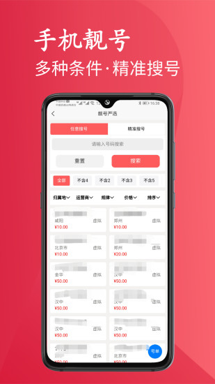 靓号严选app是一款专注于提供优质手机号码的手机应用,在这里拥有海量的号码可以供你筛选和选择,不仅是手机号码,还有价值不菲的QQ号也可以购买。拥有一个优质的手机号码或者QQ号是一件很酷的事情,对于很多的商人来说优质的手机号也更加容易让客户记住。而这款靓号严选app就可以轻松找到令你满意的号码,你还可以进行号码等级或者尾号的搜索,还有很多的套餐可以选择。