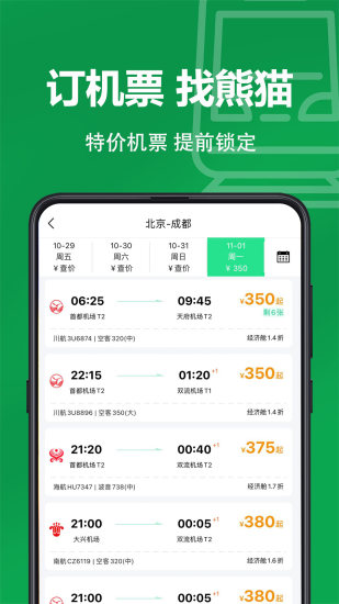 熊猫票务APP是致力于提供线上官方一站式票务预订的手机APP,通过它你可以轻松查询到飞机或者火车还有某个城市酒店的具体信息,而且填入你的个人信息就可以直接预订。当你首次打开这款熊猫票务APP就可以领取新人大礼包,而且每天都有特价飞机票和酒店可以抢购,包括国内各种景点的门票都可以预订。如果你在节假日想要回家的话我们也会为你开启双通道去抢票哦。