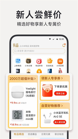 小米有品最新版2024是小米旗下的一家电商平台,专注于提供优质的生活消费品。在小米有品上用户可以购买各种小米品牌及合作品牌的产品,包括手机、电脑、智能家居设备等等各种常用的商品。当然,小米有品最新版2024一直都是以“极致设计、品质生活”为理念和目标为大家提供最美好的线上购物服务,甚至还会给你带来超多选购小技巧和选择攻略,轻轻松松帮助你选择好商品。