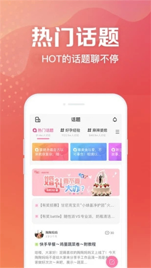 妈妈社区APP下载是一款专门为所有的准妈妈社交的软件平台,在这里拥有着最为全面的育儿经验,所有的辣妈都在这里分享着自己的从怀孕到育儿这一路的心路历程,在这里拥有着极为强大的交流社区,超多的妈妈们汇聚于此,超多话题你都是可以参与进去一起讨论的,发表你自己的育儿经验供他人参考。