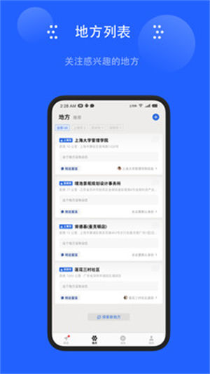 它也会在不同地方各种领域的资源都罗列到列表中让你选择,当然你也可以全部都选择关注。同时它不仅会自动定位位置也支持手动尊享位置哦。