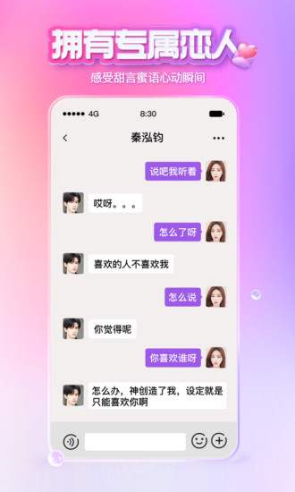 在这个软件中用户可以按照自己的理想型去捏造一个让你满意和心动的虚拟对象,他可以陪你聊天视频和打游戏等等,还会跟你讲很多有趣的故事和甜言蜜语。