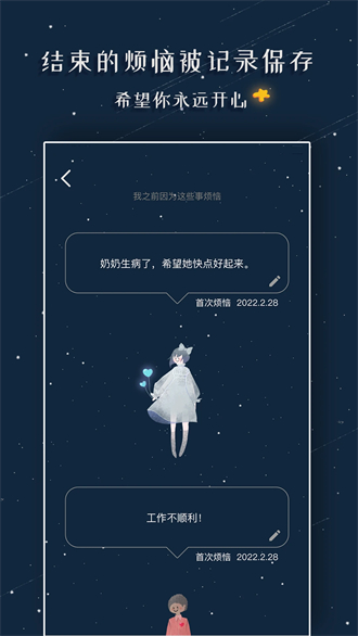 解忧的娃娃app是一款专注于为大众提供解忧和解压服务的手机APP,不管你有什么样的烦恼都可以来到这里倾诉,不仅会遇见真正懂你的人,而且你同样可以成为帮别人解忧的人!在这个社会竞争压力如此大的情况下,每个人都出现了不少的烦恼,但是又很难找到可以倾诉的人,这个时候就会特别难受,那到底要怎么办呢?或许选择解忧的娃娃app就可以解决你的问题了哦,欢迎各位小伙伴来宣泄自己的压力和烦恼~