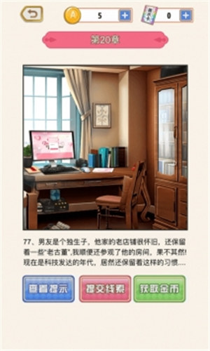 游戏中有着多种场景,不同的场景会有一些线索,玩家需要不断的查看,找到每一个线索,就可以完成游戏中的挑战,获取最终的游戏胜利,还有奖励。