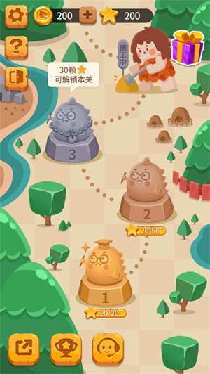 游戏音乐轻松悠扬,还能离线游玩,无需联网就能体验快乐游戏,游戏拥有多种原始时代的石器,玩家需要不断获取更多石器。