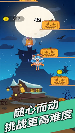 多种新奇有趣的道具可以随意选择和使用,不同的游戏道具拥有不同的使用效果,各种随意形态等待玩家发现和解锁,完美跳跃还能获得神秘皮肤。