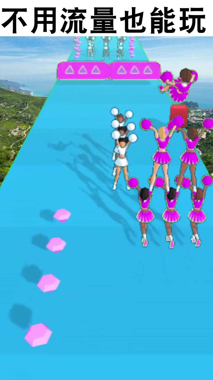 啦啦队快跑游戏免费版是一款以热血的啦啦队形式展现的趣味手机跑酷类小游戏,玩家在该游戏中需要解锁各种类型的啦啦队队形进入到赛道中跑酷,同时还要在赛道中不断拾取钻石物资和队员让你的队伍变得越来越壮大。我们这款啦啦队快跑游戏免费版将大家都很喜欢的跑酷和啦啦队队员都结合到在一起,同时你还可以给啦啦队更换各种类型的服饰和使用道具帮助你走的更远。