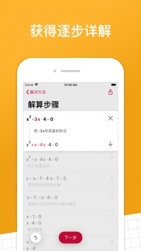 很好用的一款软件,简洁明了的页面,看起来清爽简约。文字识别功能确实很强大,秒出答案。photomath+能够清晰的地解释解算步骤。
