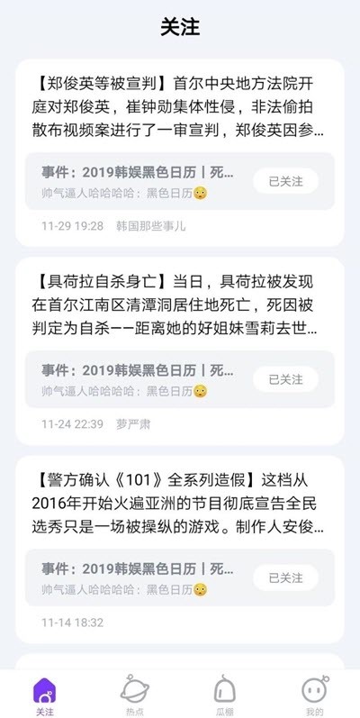 3、让大家可以在第一时间吃到最新鲜的瓜,及时推送各个明星八卦和娱乐新闻,将碎片化的事件进行整理,一目了然