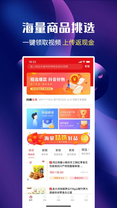 专注于短视频带货,每款商品的佣金一般在20%-90%,每天都有超多达人在线精选推荐,每件商品都有官方制作的优质视频素材,更多优质商品等你体验,还能帮助大家学习更多带货技巧,超多原创内容等着你,助力短视频达人的作品投放抖加,还有很多优惠可以领取,购物惊喜非常多,你也可以在这里自行拍摄创意内容,赶紧来试试吧。