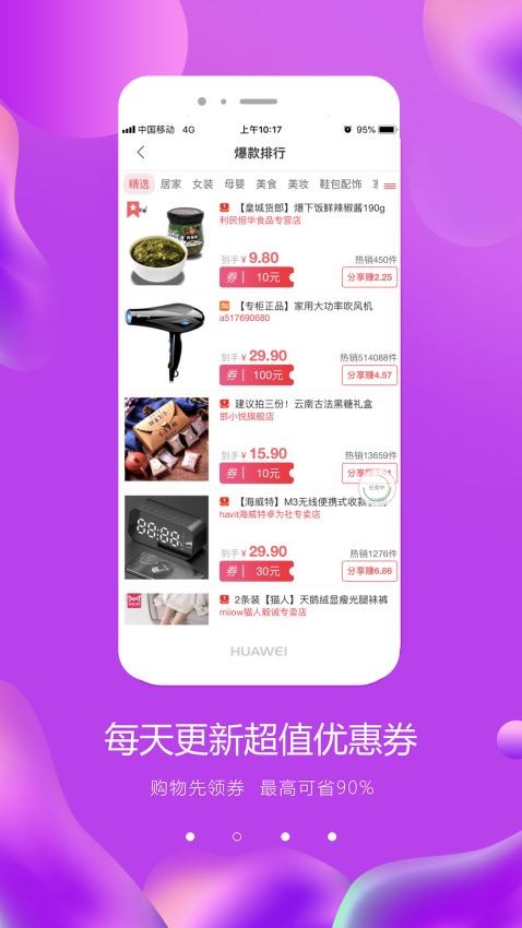 优惠券、购物活动都是与淘宝、天猫进行同步更新的;