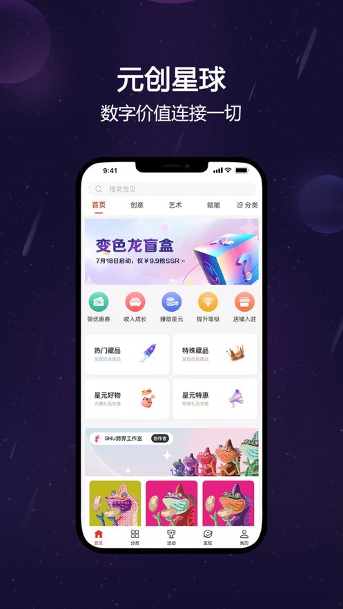 1、它是一款购物软件,拥有各种数字收藏商品。云可以竞购文化和创意产品。