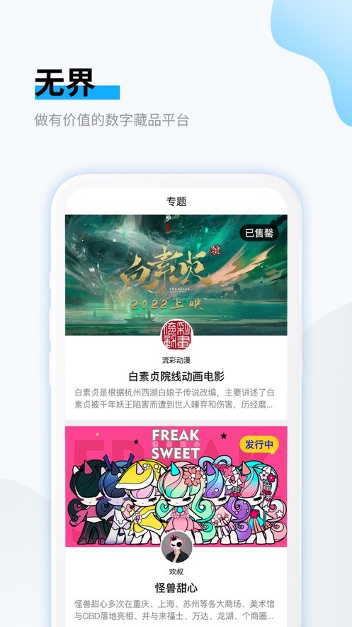 无界宇宙数字藏品是一款十分专业的数字藏品平台,这里有非常多的优质藏品,用户们可以在这里欣赏并且购买各种各样的藏品,让用户们能够离艺术更进一步,在这里体验不同的艺术熏陶,在这里购买藏品也是非常的方便的,每个藏品都有自己独一无二的序列码,让用户们可以在这里溯源追踪,为用户们提供了安全可靠的购物环境,如果你感兴趣的话就一定要来这里下载哦!