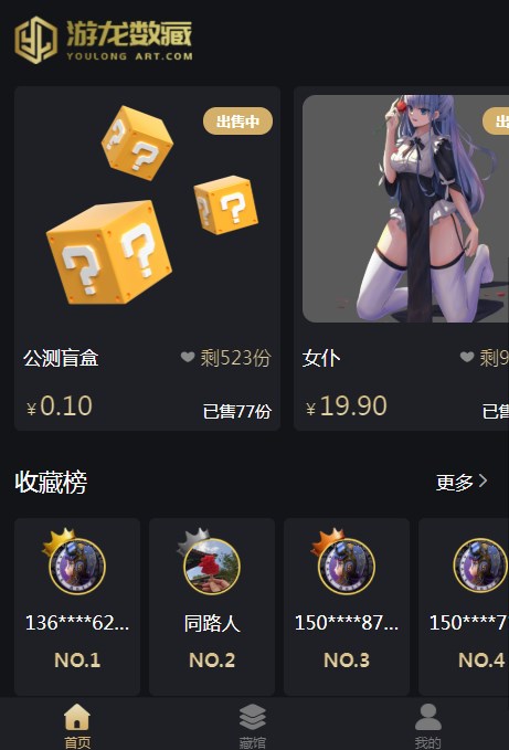 1、游龙数藏为你提供最新的数字藏品资讯信息,在这里掌握最新的藏品交易动态