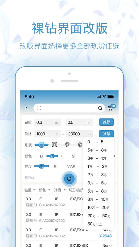3.裸钻界面改版,改版界面选择更多全部现货任选;增推广模块,提供各种朋友国文案和视频助力吸客