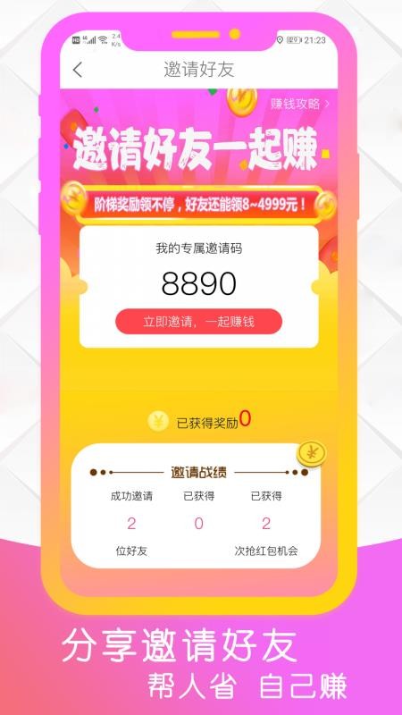 转发邀请码给好友就有机会获得抢红包奖励;