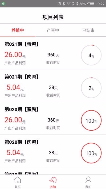 收益统计,帮助用户查看自己参与养殖项目赚取的收益,轻松查看收益情况;