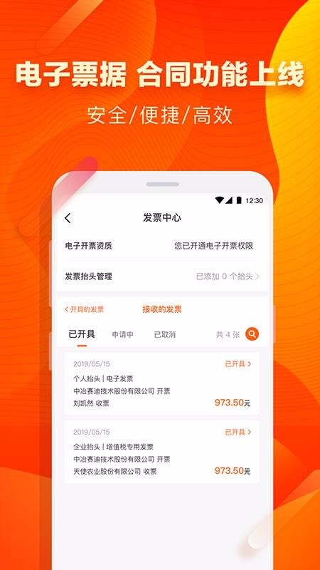 发票中心:支持开具电子发票,可以开具与接收发票;