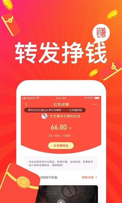分享就能赚钱,另外购物还能够购物返利获得佣金奖赏;提现速度更快,一秒就能提现到账,提现金额由你定;参加服务平台主题活动,取得成功变成购物达人或是榜单就能获得奖赏;能够面对营销推广店面老板,一对一沟通交流联系,进货、谈价都能搞定。