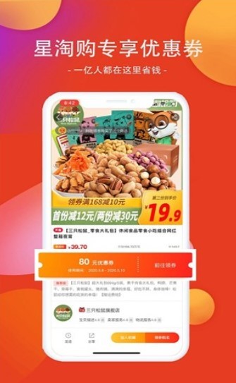 星淘购是一款非常好用的手机线上购物软件,软件内有非常多的购物商品,让用户们能够轻松的在这里购买到自己需要的商品,还有非常多的购物优惠券为你提供,让你先领券在购物,购物更加的优惠,快来试试吧!
