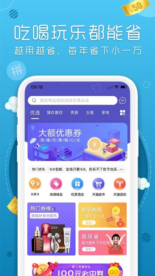 2、用户通过丸子街app,可以领取到淘宝、天猫、拼多多等平台的购物优惠,买东西之前先领券,能够节省不少