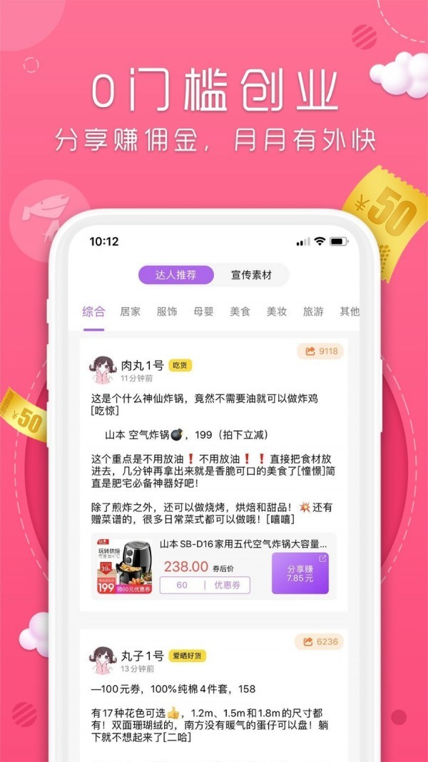 3、丸子街app还为大家带来了0门槛赚钱的机会,大家将平台内的优惠信息分享给好友,好友下单你就可以赚取相应的佣金奖励