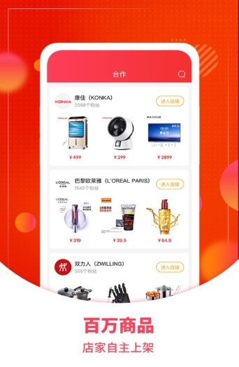将自己所喜欢的商品加入购物车,多种风格自由切换,实时查询自身与旗下代理收入情况和提取等操作,超多的热销商品能够及时进行购买,语音搜索和条码搜索,让搜索变得更便捷、快速, APP拥有积分签到积分商城、积分兑换、购物返积分以及买家秀功能增加用户粘度,多专场,细分类,每一步都抓住用户的心。