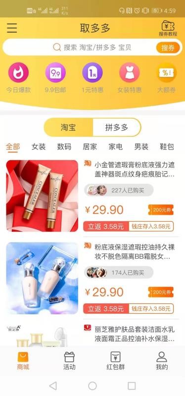 取多多app一款超省钱的网购平台,消费者这里能够购物省钱,大量超大金额优惠券让消费者免费领取,淘宝网、天猫商城、京东商城等电子商务平台的优惠券让消费者领不完。每日优选上万款有内部优惠券的产品,消费者能够先领优惠券后再提交订单,全方位享受先领券再提交订单的褔利优惠,那样能够让消费者的产品选购省钱,优惠券抵扣消費。