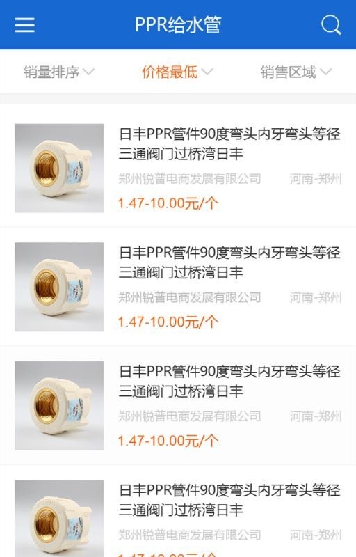 管道个性筛选,采购管道的时候可以根据销量、价格和销售区域进行自主的个性化筛选;