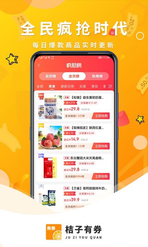 桔子有券是一款全新推出的电商购物平台,里面的商品种类非常丰富,用户的日常购物需求都能在这里得到满足,平台为用户准备了海量的隐藏优惠,用户可以更好的享受各种折扣,新人还有专享福利而且可以无门槛使用非常不错,双十一马上就要到了,小伙伴们快来本站下载桔子有券领取津贴礼包吧。