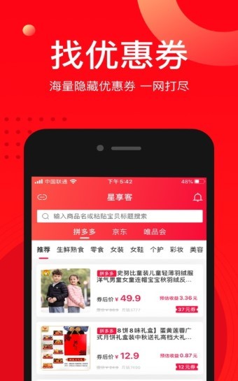 星享客是一款非常好用的手机线上购物软件,为用户们带来了超多的优质商品,覆盖到了超多的行业,不管是生活用品还是办公用户,你都能够轻松的在这里找到,使用起来也非常的方便,满足用户们的不同的购物需求!