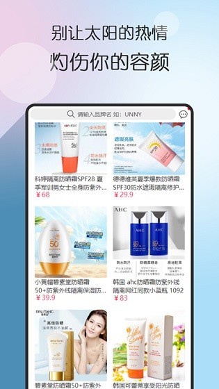 防晒汇app是一款非常不错的防晒用品购物平台,品牌官方授权;海关监管,平台千万件优质商品任意选购,超低价限时限量发售,抢到就是赚到,平台上汇聚国内、知名品牌,平台千万件优质商品任意选购,海量优惠券发放,打破传统缓慢代理模式,让你轻松找到适合你的防晒用品。
