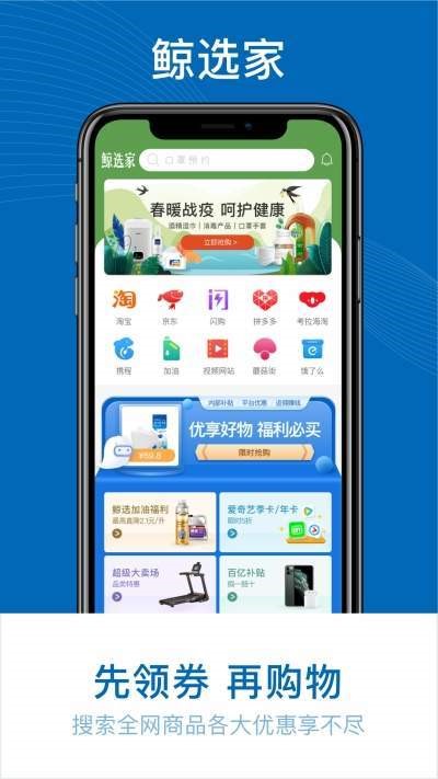 鲸选家是很火爆的手机在线购物商场,这里有海量的商品,满足用户的日常购物需求,用户可以在线下单,还有超多优惠活动,大额优惠券,让你购物更加优惠,感兴趣的朋友可以下载