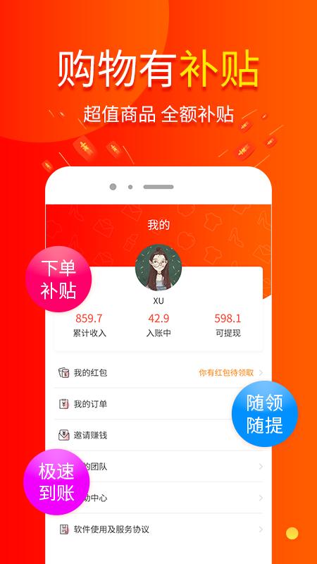 5.您可以邀请更多的好友使用APP购物,在线赚取更多的外快;